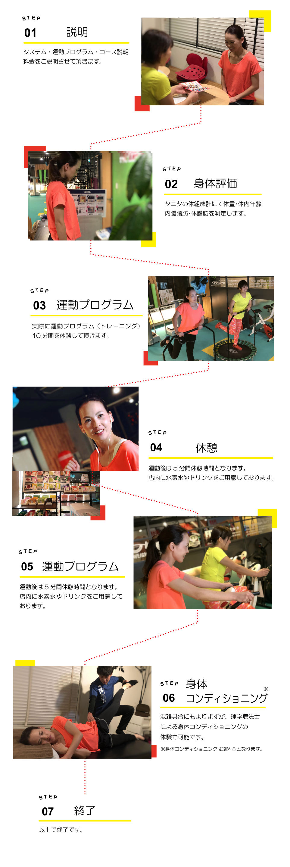 ご予約なしでも承っておりますが事前にお電話を頂きますと運動プログラム体験だけではなく、理学療法士による「身体コンディショニングサービス」もご用意させて頂きます。